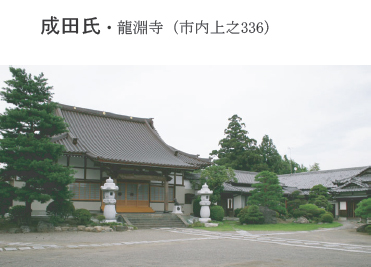 ![]() 成田氏は平安時代末に上之堀の内に住み一帯を 治める。始祖・助高は成田太夫、その4人息子は、 太郎が成田氏を相続、弟達は別府氏、奈良氏、玉 井氏となる。成田太郎は保元の乱で活躍。成田五 郎は一の谷の合戦で平山氏と直実とともに先陣を 争う。成田氏の後裔、忍城主・成田氏長につなが る。上之には菩提寺・龍淵寺の他、成田氏ゆかり の神社仏閣・史跡が多い。 |